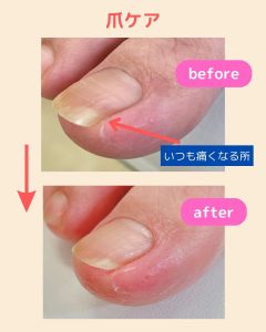 昔から足裏の角質でお悩みのお客様です。 自宅でのセルフケアをしているそうですが、少しお休みすると硬くなってしまうとのことです。ウオノメも数箇所できていました💦 こういう悩みを解決してくれるお店がなくて…と思っていましたが […]