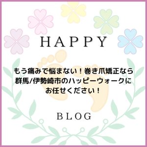 こんにちは。ハッピーウォークの仁科里江です。 歩くたびに感じる”巻き爪””による痛みや不快感でお困りではありませんか? 「仕事に集中したいのに巻き爪の食込む痛みで集中できない」 「仕事でパンプスを履かなくてはならないけれ […]