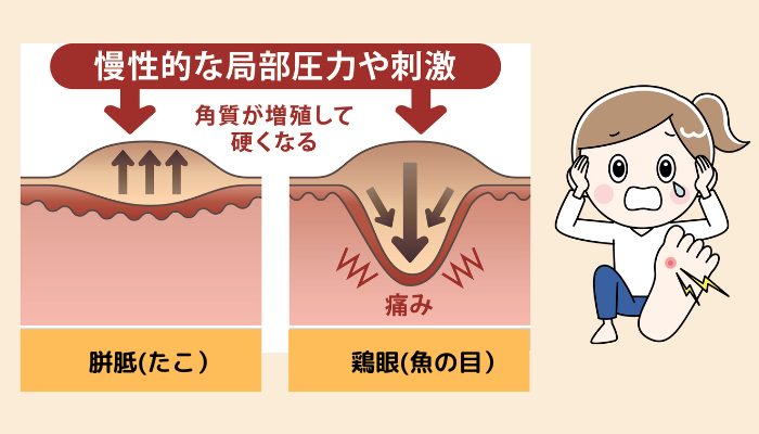 その結果、タコや魚の目といったトラブルへと進行してしまうのです。