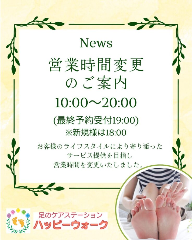 いつも足のケアステーション ハッピーウォークをご利用いただき、誠にありがとうございます。