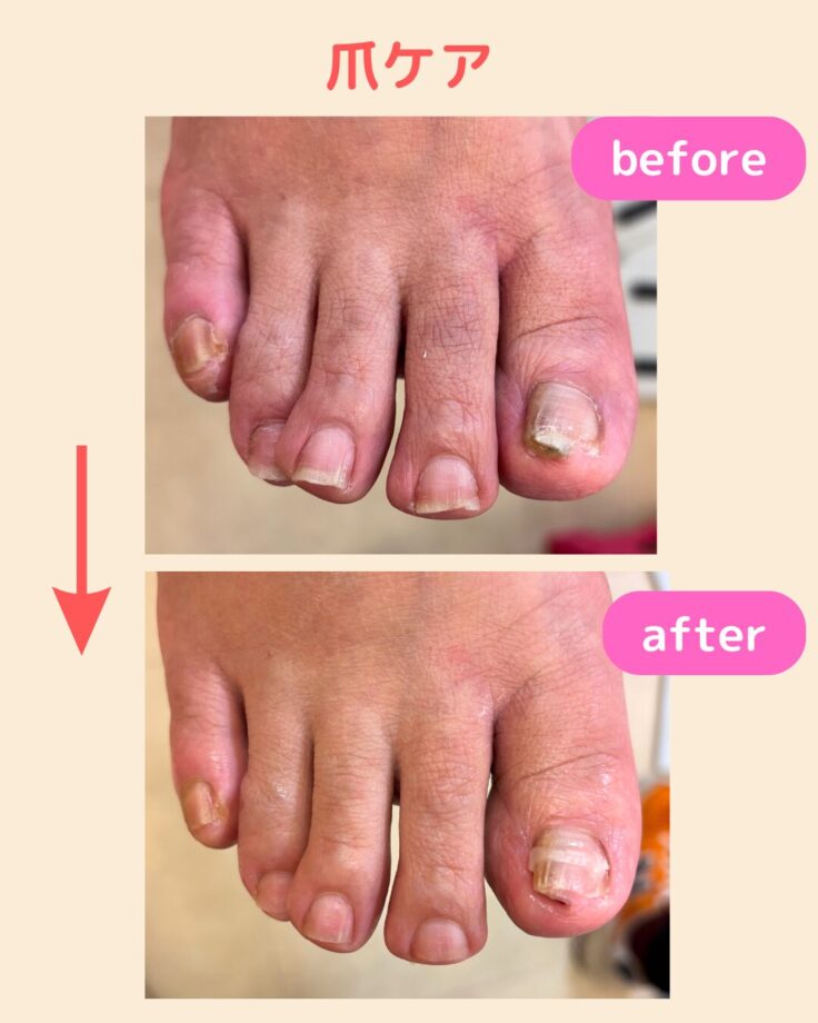 「爪が自分で切れなくなりました…😢」とお悩みで来店されたお客様です。