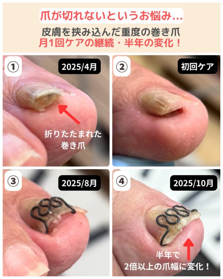 【巻き爪ケアの症例】半年で大きく変化した“自分で切れない巻き爪”