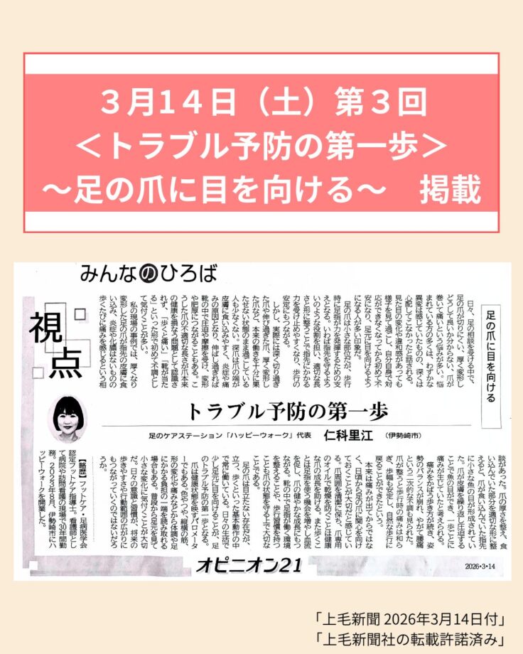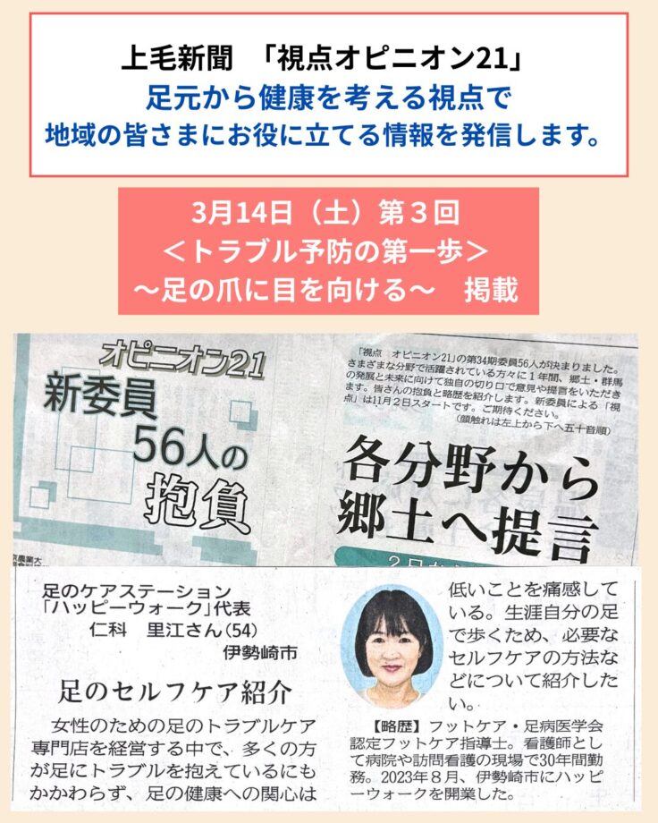 視点オピニオン21 第3回「トラブル予防の第一歩~足の爪に目を向ける~」掲載のお知らせ