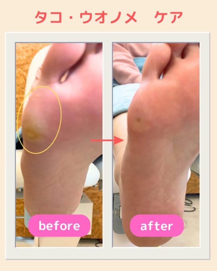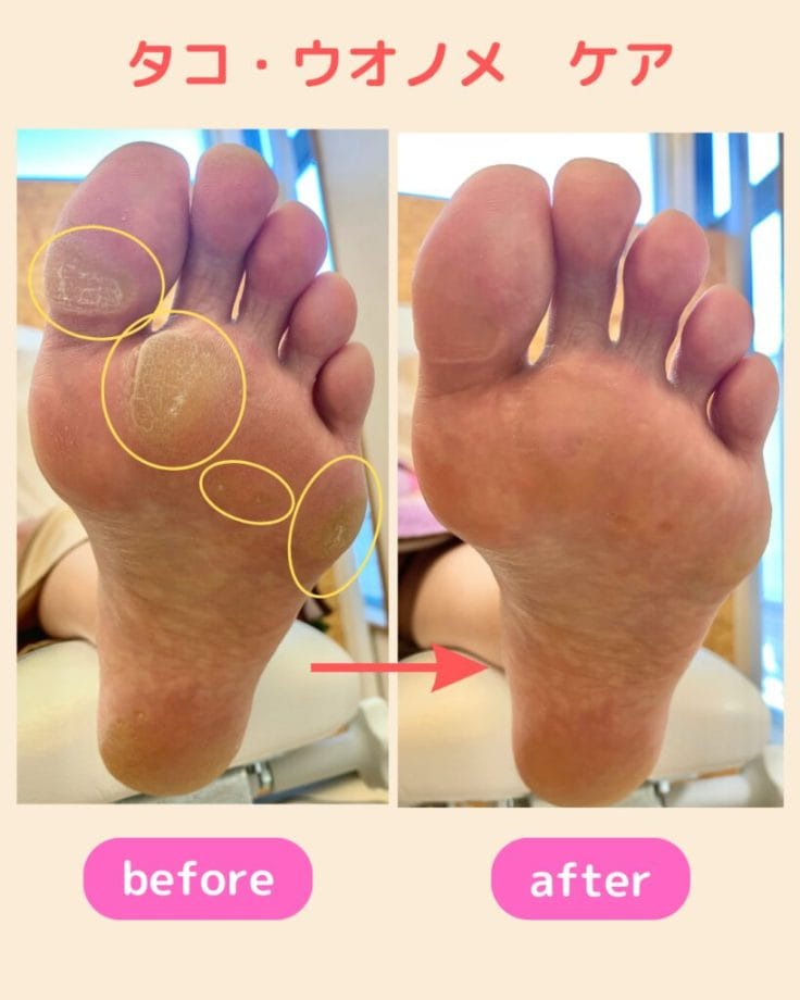 1度のケアで痛みは取れますが、再度放置すると外的刺激により徐々に皮膚が固くなりターンオーバーのサイクルが乱れ、より角化してしまいます。