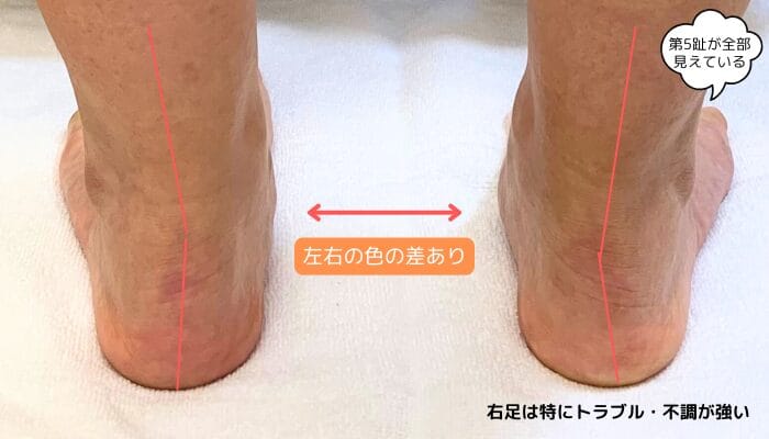 カウンセリングで、まさか足の骨格が崩れているなんて思いもしなかったけれど、実際に写真を見て、かかとが曲がっていてビックリ!