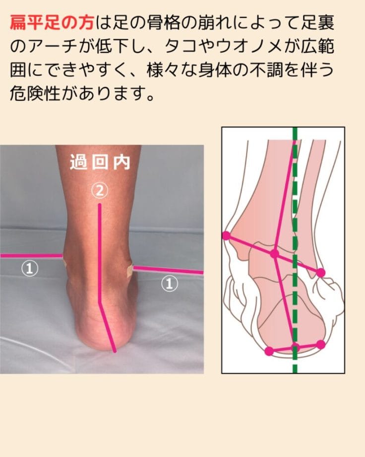 - 足の骨格の崩れがないか確認